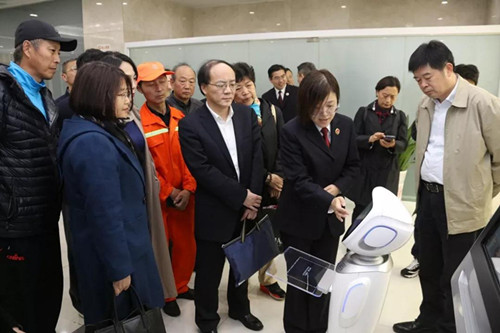 陈炯(省人大代表)南京公路客运站务有限公司女工主任、服务班班长:“这次来到检察院,我是满满的惊喜。最大的变化就是服务大厅的案管机器人“小苏”,检察院大数据平台的应用也值得称赞。希望检察院在维护公平正义和社会治安方面持续发力、主动作为。”