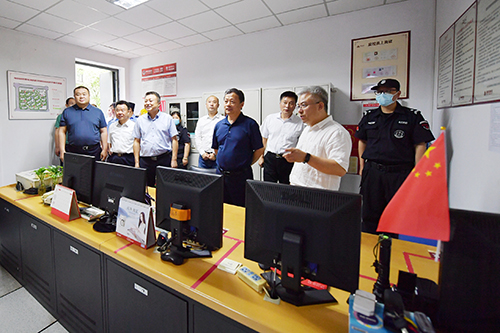 徐锦辉一行来到莫愁湖街道茶亭社区和兴隆街道海棠园小区,先后查看了小区及楼栋单元出入口、车棚、监控中心等部位的智能化安防设施建设应用情况,观看了“莫愁红图”系统操作演示,详细了解了政法网格员下社区以及社区警务室人口管理工作等有关情况。徐锦辉对社区开拓思路,充分利用信息化、智能化手段创新社区工作模式给予充分肯定。并指出要将公安人口管理工作与智慧小区建设深度融合、统筹推进,社区智能前端采集的人脸数据以及与生活息息相关的水电油气等信息要介入公安平台进行综合研判,助推人口管理、服务群众质效的“双提升”。