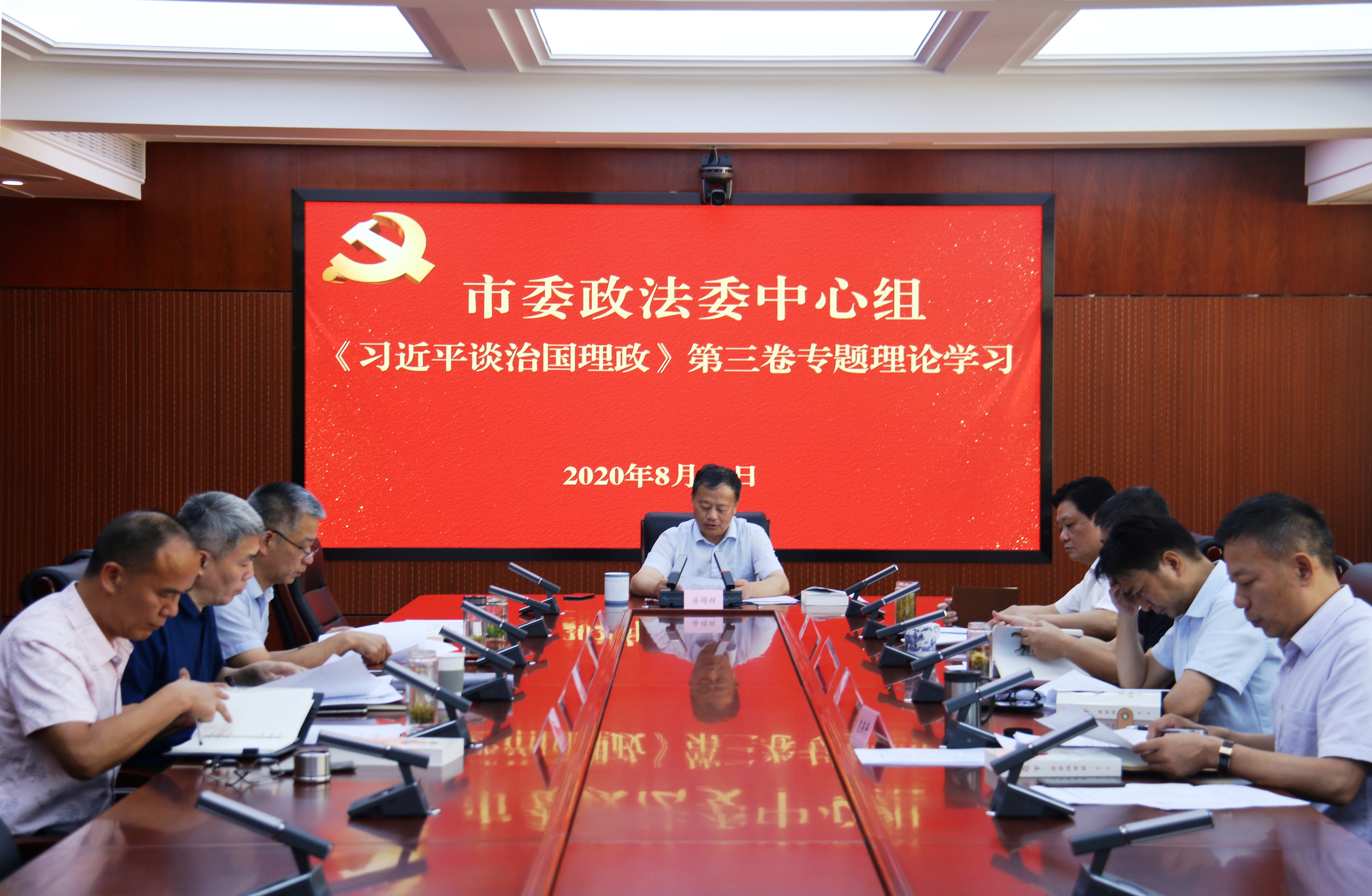 8月18日下午,市委政法委开展理论学习中心组集中学习研讨,专题学习《习近平谈治国理政》第三卷,市委常委、政法委书记徐锦辉主持学习会,并对委机关学习活动提出要求。