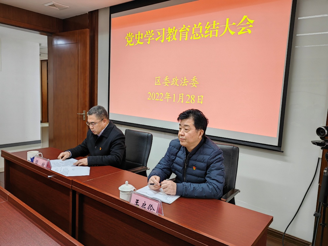 1月28日,鼓楼区委政法委召开党史学习教育总结会议。深入贯彻习近平总书记关于党史学习教育重要讲话指示精神,全面落实中央政治局专题民主生活会精神,认真总结全委开展党史学习教育情况,对进一步巩固拓展党史学习教育成果作出部署。区委政法委常务副书记闫航主持会议并讲话,区委党史学习教育第一巡回指导组成员王启伦主任到会指导。
