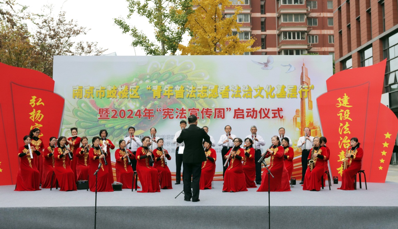 12月4日,在第十一个国家宪法日到来之际,南京市鼓楼区“青年普法志愿者法治文化基层行”暨2024年“宪法宣传周”启动仪式在江东街道弘辉龙江里广场举行。此次活动由南京市鼓楼区委政法委主办,鼓楼区法学会、江东街道承办,旨在深入学习宣传贯彻习近平法治思想,弘扬宪法精神,加强法治文化建设,推动基层社会治理法治化水平提升。