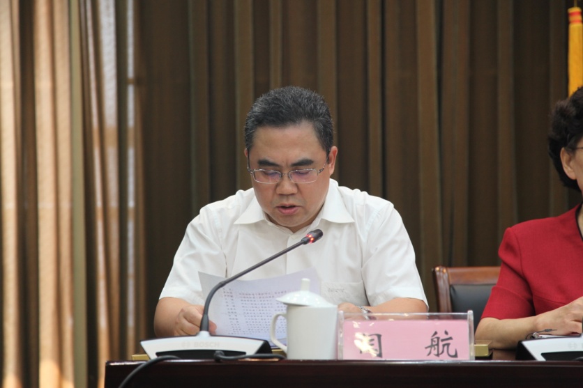 区委政法委常务副书记闫航宣读《关于成立鼓楼区少年法学院工作领导小组的通知》和《关于成立鼓楼区少年法学院的通知》。