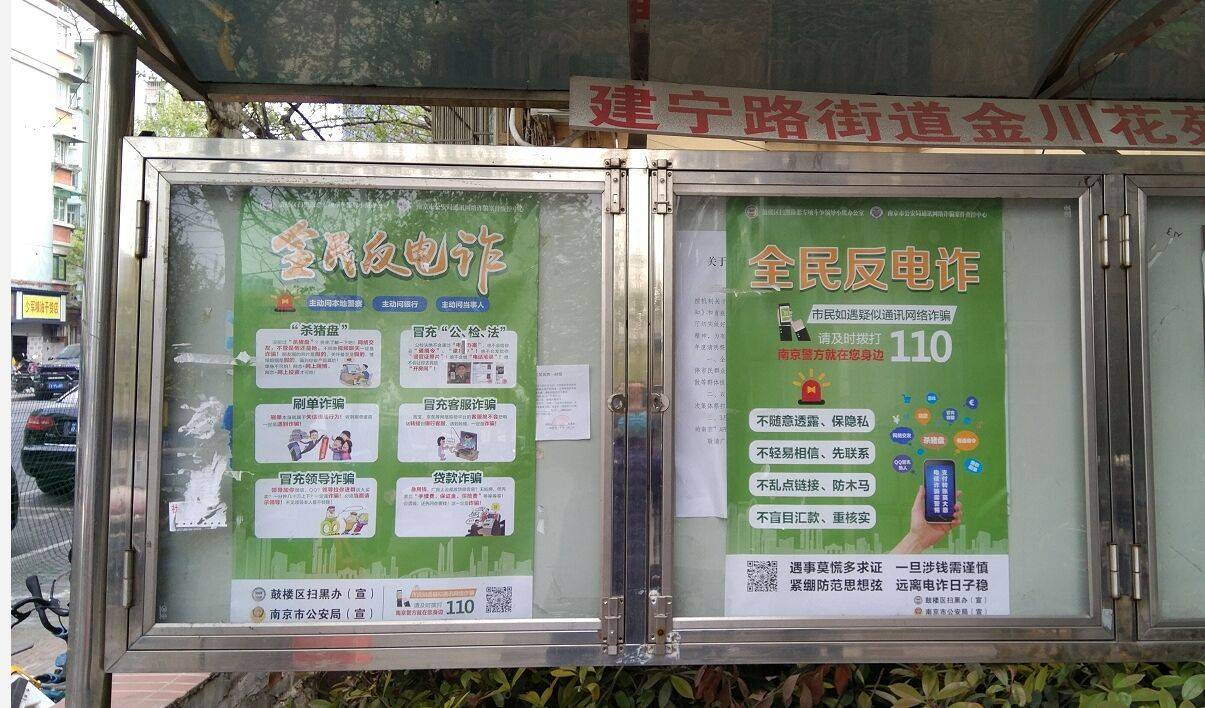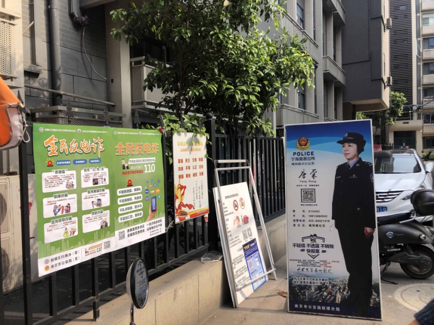 在宁海路街道颐和路社区,有不少学校、政府机关、金融机构。该社区意识到,这些单位如果能够将反诈工作落实好,就能起到带头模范作用,助力将反诈知识更好地向周边传播。因此,社区志愿者们在相关单位循环播放反电诈宣传片、张贴海报、树立展板,争取宣传所到之处皆能耳濡,全民防诈意识大大提升。