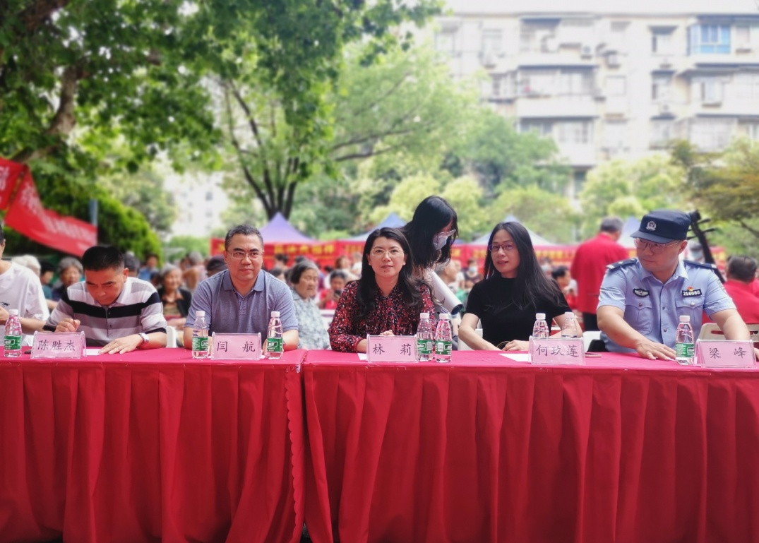 为进一步深化平安建设,着力提升居民群众安全感、幸福感和满意度,打造平安鼓楼、幸福凤凰,6月2日,鼓楼区委政法委联合凤凰街道在莫愁新寓广场举办“共建共治共享 提升群众安全感”平安法治文化广场宣传活动。区委政法委常务副书记闫航,凤凰街道工委副书记林莉、办事处副主任何玖莲,汉中门派出所副所长梁峰等领导出席活动。区委政法委综治科、凤凰街道政法网格员、综治社工、网格员、平安志愿者和居民群众共计300余人参加活动。