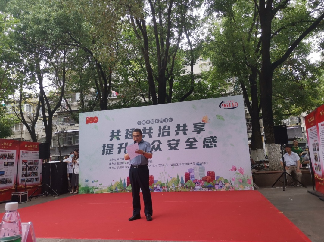 活动伊始,闫航书记致辞,他充分肯定了凤凰街道平安创建工作,对始终坚守在基层一线的社区工作者和平安志愿者表示衷心感谢。他表示,此次活动不仅是一次平安建设工作的普及宣传,更是一次呼吁动员,希望居民群众能够支持配合并主动加入到维护治安、法治宣传、扫黑除恶、志愿服务等平安创建工作中去,与街道、社区一起共筑平安网格幸福家园!