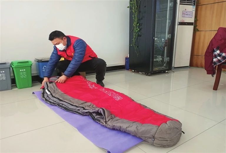 睡袋、方便面、简易的打火灶,这是竹镇镇大泉村网格员陈兆拼的“装备”,自从疫情防控战役打响以来,他已经十多天没有回家了,每天除了外出给志愿者发放口罩、为居家医学观察人员送去米油菜等生活物品外,其他时间都要守在办公室里。“主要负责信息汇总通报,要随时待命。”陈兆拼说,年三十,自己接到紧急任务随即回到工作岗位,当时还没有想到,这一次上班和平时不一样,不仅年三十的年夜饭没吃上,还持续十多天没回家。一开始没有想到需要持续值班,陈兆拼没有准备生活用品,还是后来临时让家人送过来的,其中就有一个睡袋。夜深人静忙完工作时,他就在办公室的空地上铺上睡袋小睡一会,地砖很硬很凉,单薄的睡袋却是陈兆拼养精蓄锐的必需品。
