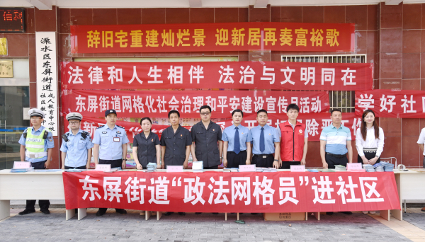 政法网格员下沉一线参加东屏街道“网格化治理和平安建设”广场宣传日活动