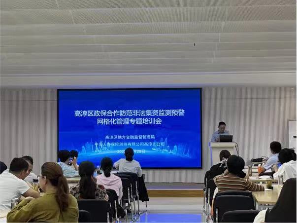 高淳区地方金融监管局利用保险公司网点体系多、业务员分布广的优势,联合中国人寿保险高淳支公司创新开展政保合作防范非法集资网格化管理培训暨防处非宣传活动,近百名保险业务骨干参加。
