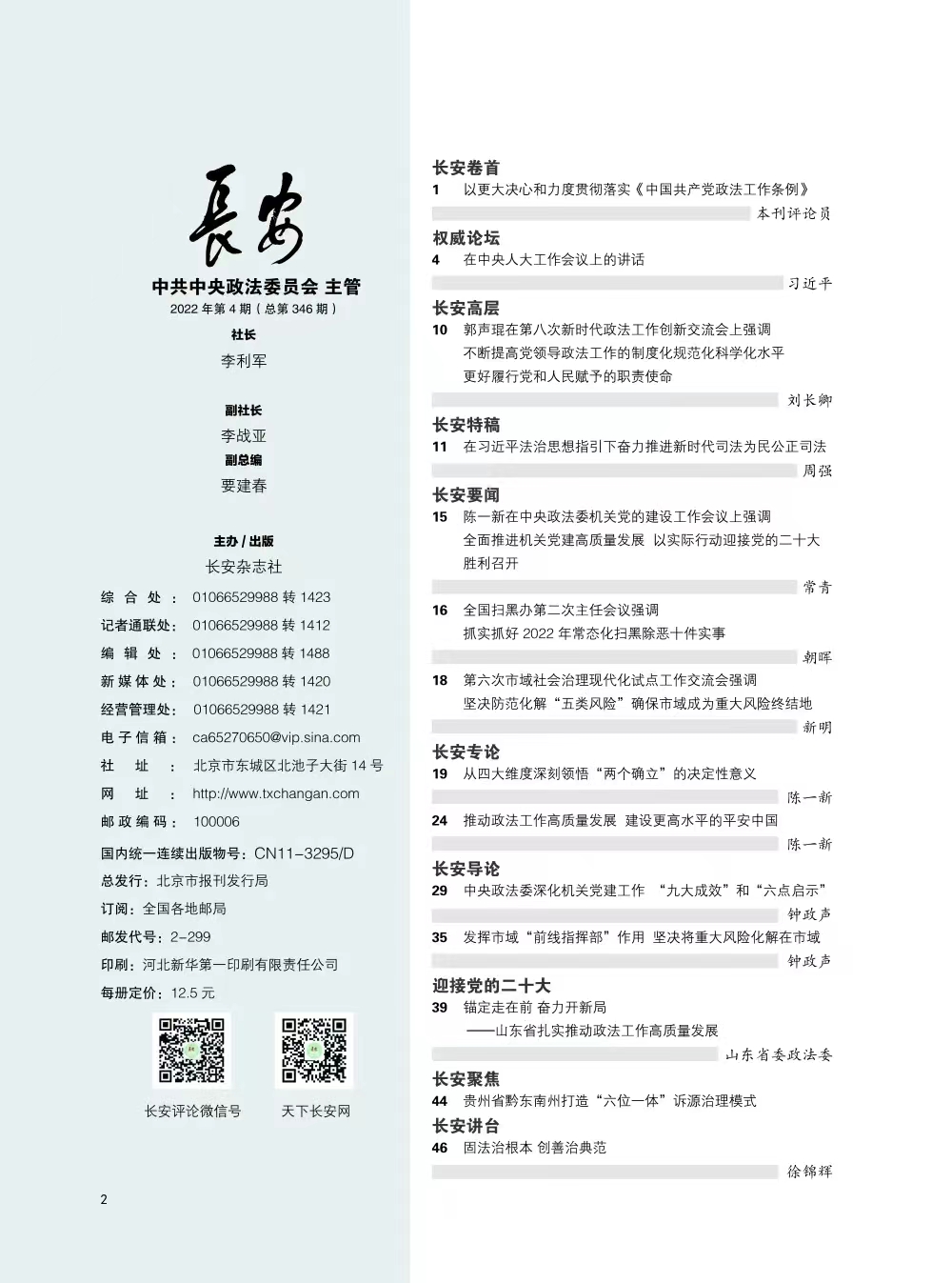 近日,中央政法委《长安》杂志“长安讲台”栏目,以“固法治根本 创善治典范”为题,刊发市委常委、政法委书记徐锦辉署名文章。